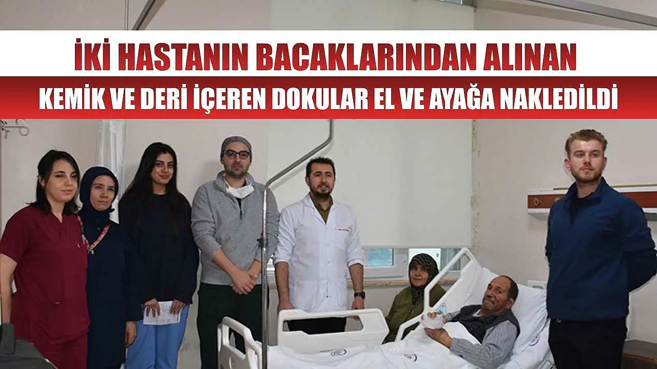 Doktor Öğretim Üyesi Arif Yılmaz ve ekibi tarafından yapılan başarılı ameliyatlarla iki hastanın bacaklarından kemik ile deri içeren dokuları alınarak birinin eline, diğerinin de ayağına nakledildi.