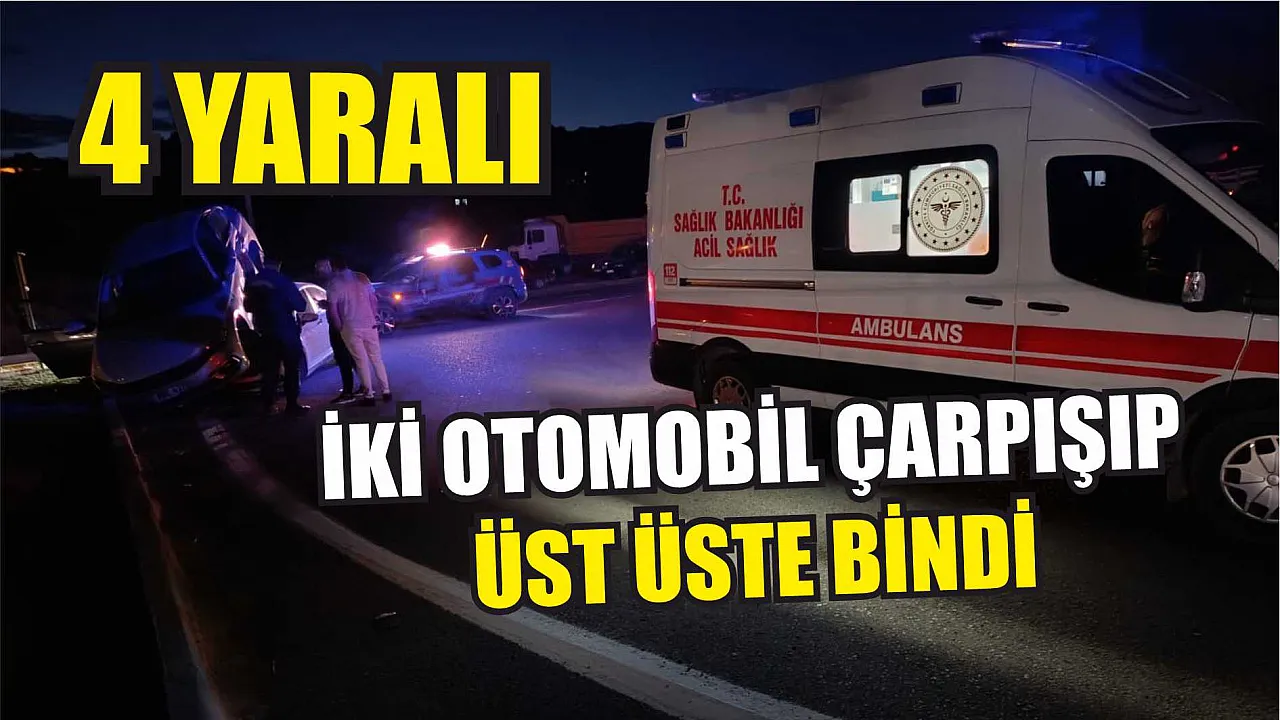 İki otomobil çarpışıp üst üste bindi: 4 yaralı
