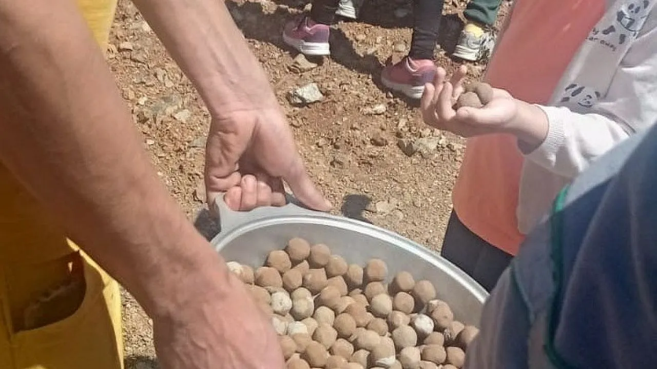 İlköğretim öğrencileri yanan alanlara tohum topu attı