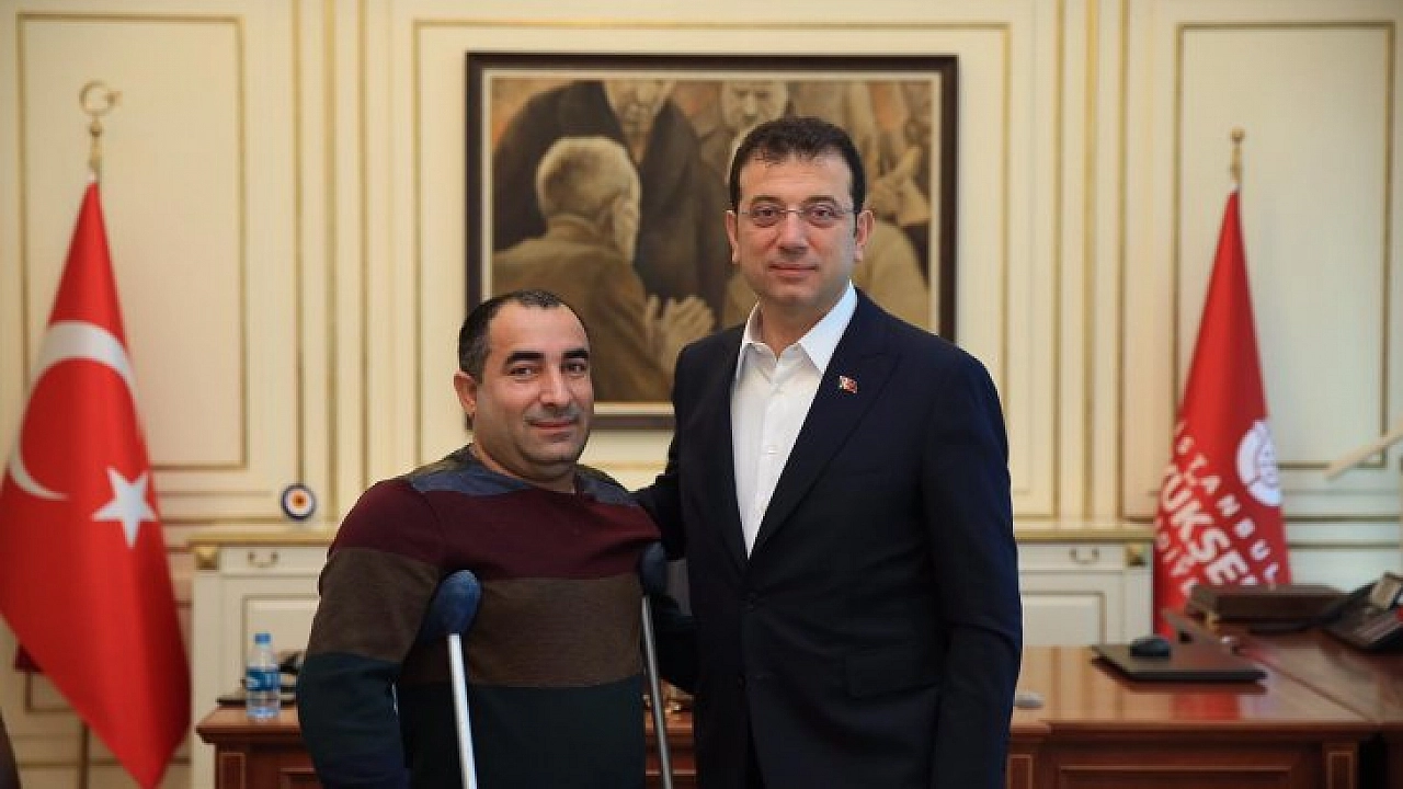 İstanbul Büyükşehir Belediye Başkanı Ekrem İmamoğlu, Türkiye Sakatlar Derneği Fethiye Şube Başkanı Aydoğan Arslanca'yı makamında misafir etti. Sohbet havasında geçen ziyarette İstanbul Büyükşehir Belediye Meclis Üyesi Nazife Figen Karahan da yer aldı.