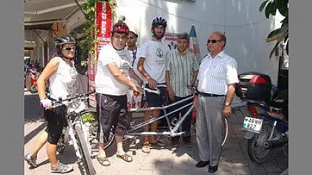Altı Nokta Körler Derneği İstanbul Şube Başkanı Murat Demirok ve kendine eşlik eden bisikletçiler, Fethiye’ye geldi. Demirok, “9 Temmuz’da İstanbul’dan başlayan ve üç gün sonra Antalya’da son bulacak tur ile toplam bin 100 kilometre pedal basacaklarını söyledi. “İnadına Görmek” adlı belgeselin çekimi için İstanbul Şişli'deki Atatürk Müzesi önünden 9 Temmuz Tarihinde Şişli Belediye Başkanı Mustafa Sarıgül tarafından uğurlanarak Bisiklet ile yola çıkan Altı Nokta Körler Derneği İstanbul Şube Başkanı görme engelli Murat Demirok ve kendine eşlik eden bisikletçiler, Fethiye’ye geldi. Marmara Üniversitesi Bisiklet Kulübü Başkanı 23 yaşındaki Samet Aksuoğlu ile tandem bisiklete binen Murat Demirok’a 33 yaşındaki bisiklet sporcusu Funda Ulutürk ile Belgesel Yapımcısı Cengiz Yargıcı, bisikletle eşlik ediyor. 15 gün sürecek bisiklet turu sırasında ilginç anılar yaşanırken özellikle sahil boyunca devam eden turda halkın gösterdiği destek moral veriyor. Fethiye’ye gelen bisikletliler Altı Nokta Körler Derneği Fethiye Şube Başkanı Mehmet Üstün’ü ziyaret etti. Ziyarette konuşan Altı Nokta Körler Derneği İstanbul Şube Başkanı Murat Demirok, “İnadına Görmek” belgeselini bakmak ve görmek arasındaki farkı vurgulamak, görme engellilerin sosyal ve sportif alanlarda önlerindeki engelleri kaldırmak, sportif, sağlıklı, çevreci bisikletli yaşamı yaygınlaştırmak için yaptıklarını belirtti. Belgeseldeki görüntüleri kendisine destek veren Samet Aksuoğlu'nun kullandığı iki kişilik bisikletin arkasında oturup, kaskının üzerine yerleştirilen küçük kamerayla çektiğini belirten Demirok, şunları söyledi: “Türkiye’deki yaklaşık 700 bin görme engellinin 30 bini sokakta ama 670 bini evinde hapis durumda. Ailelerin duyarlı olup engellileri evlerinde tutmaması, onları sokağa çıkartıp sosyal yaşamın içerisine sokmalarını rica ediyorum. İnadına her şeyi görmek için yola çıktım. 15 günlük turumuz Antalya'da sona erecek. Belgesel, İstanbul Film Festivali, Altın Portakal ve Cannes başta olmak çeşitli film yarışmalarına katılacak. Belgeselle engellilerin de bisiklet kullanabileceklerine, kamera çekimleri yapabileceklerine de dikkat çekilecek” dedi. Altı Nokta Körler Derneği Fethiye Şube Başkanı Mehmet Üstün, Samet Aksuoğlu, Funda Ulutürk ve Belgesel Yapımcısı Cengiz Yargıcı, “Engellilerin toplum içerisinde rahat bir şekilde neler yapabileceklerini bu proje ortaya koyacaktır. Herkese örnek olacaktır” dediler.