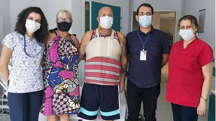 Muğla Eğitim ve Araştırma Hastanesinde geçen yıl Eylül ayında koroner baypass ameliyatı olan İngiliz vatandaşı, bir yıl sonra hem teşekkür, hem de kontrol amacıyla tekrar Muğla Eğitim ve Araştırma Hastanesine geldi.