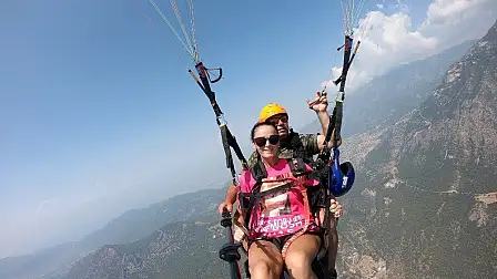 Muğla'nın Fethiye ilçesinde, İngiliz Dawn Whiteley, 4 yıl önce kolon kanserinden ölen annesinin fotoğrafını bastırdığı tişörtle yamaç paraşütü yaparak gökyüzüne andı.
