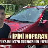 İpini koparan boğa 3 metre yükseklikten otomobilin üzerine düştü
