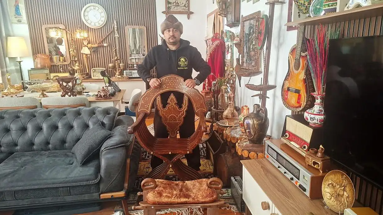 45 yaşındaki Süleyman Yolcu, evinin bir odasında eski antika eşyalarla adeta küçük bir müze oluşturdu.
