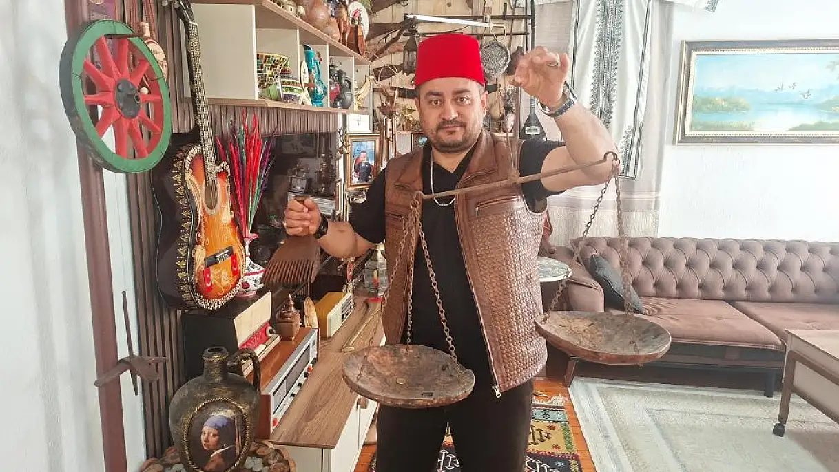 45 yaşındaki Süleyman Yolcu, evinin bir odasında eski antika eşyalarla adeta küçük bir müze oluşturdu.