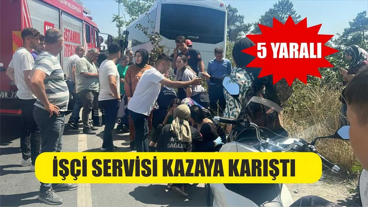 İstanbul'un Arnavutköy İlçesi'nde Başakşehir Çam ve Sakura Şehir Hastanesi'ne personel taşıyan işçi servisi kazaya karıştı. Araçta bulunan 5 işçi yaralandı. Yaralı işçiler civar hastanelere kaldırıldı.