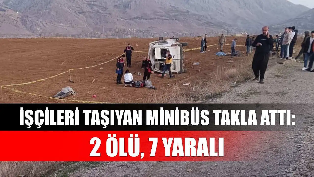 İnşaat işçilerini taşıyan minibüsün takla attığı kazada 2 kişi hayatını kaybetti, 7 kişi de yaralandı.