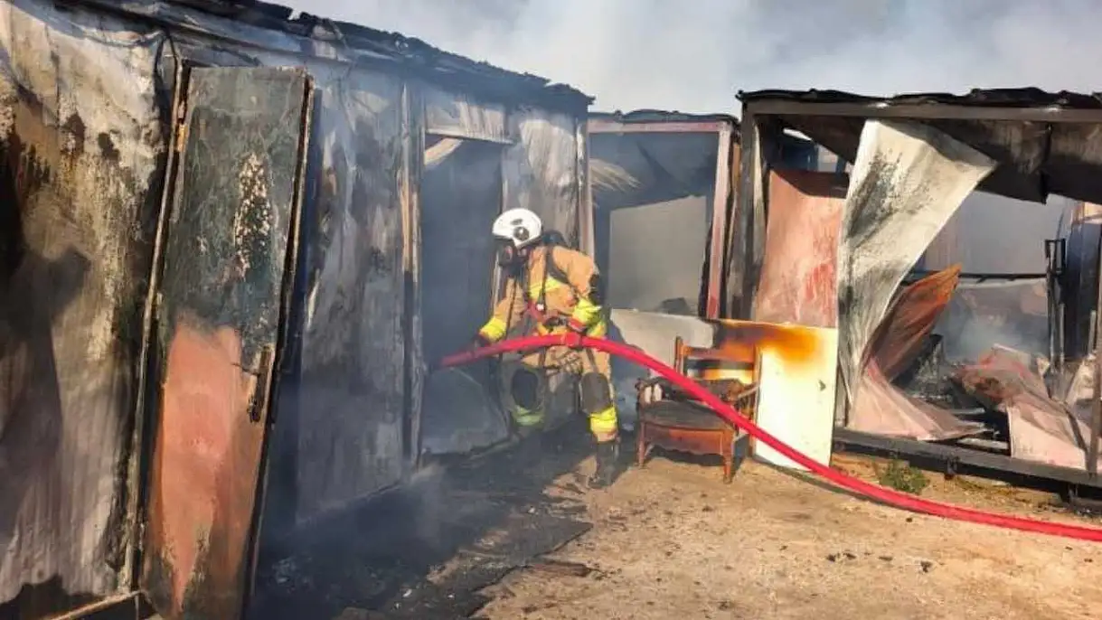 İşçilerin kaldığı konteyner yatakhane alevlere teslim oldu