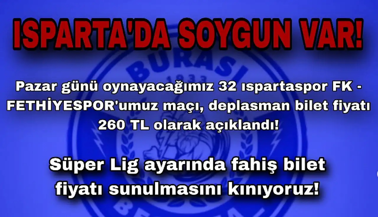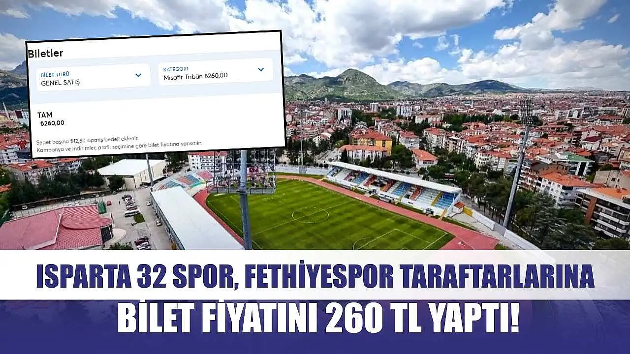 Nesine 2.Lig Kırmızı Grup 9. Hafta müsabakasında Isparta 32 Spor, Fethiyespor' u Pazar günü saat 19.00'da ağırlayacak. Biletix üzerinden satışa çıkan bilet fiyatlarında ev sahibi takım, Fethiyespor için bilet fiyatını 260 TL olarak belirledi. Fethiyespor taraftarları bu duruma büyük tepki gösterdi.
