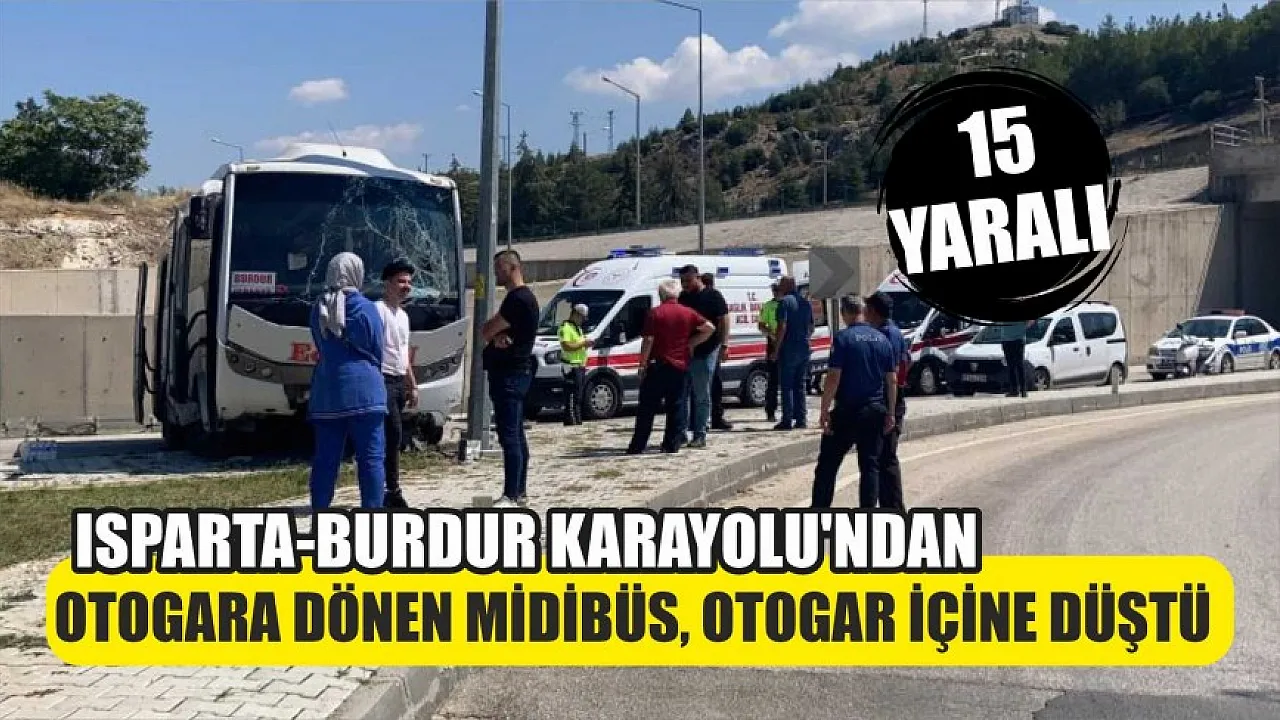 Burdur otogarına girmek üzere Isparta-Burdur karayolundan otogara dönen midibüs iddialara göre freni patladığı için virajı dönemeyip üst yoldan otogar içine düşmesi sonucu ilk belirlemelere göre 15 kişi yaralandı.