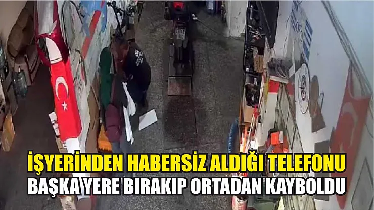 Motosiklet tamircisine gelen kadın, işletme sahibine ait cep telefonunu alarak kayıplara karıştı. O anlar iş yerinin güvenlik kamerası tarafından anbean kaydedilirken telefon kısa bir süre sonra işyerine 500 metre uzakta masanın üzerinde bulundu.