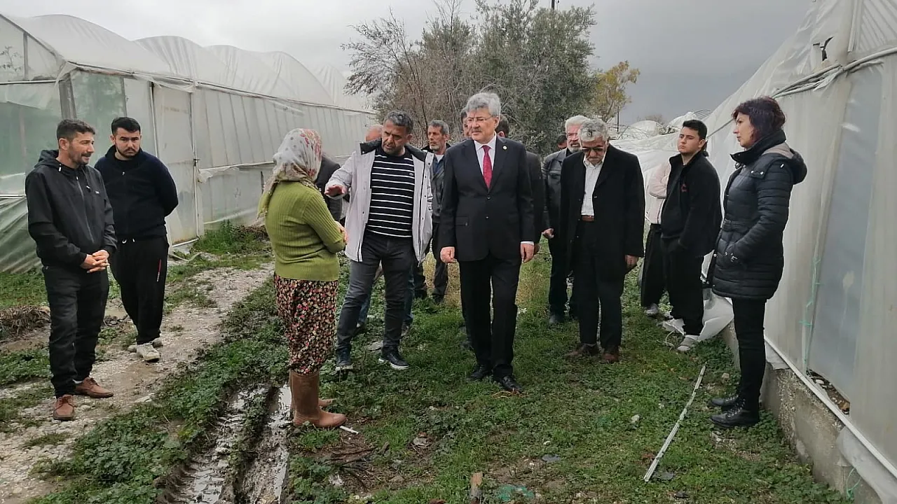 İYİ Parti Muğla Milletvekili Metin Ergün, Seydikemer ilçesine bağlı Kumluova Mahallesi'nde etkili olan hortum ve fırtına nedeniyle seraları zarar gören üreticilerle bir araya gelerek incelemelerde bulundu.