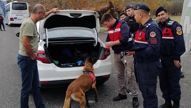 ‘Huzuru ve Güven’ uygulamasına Muğla İl Jandarma Komutanlığı bünyesinde görev yapan 126 ekip, 405 personel ile narkotik köpekler katıldı.