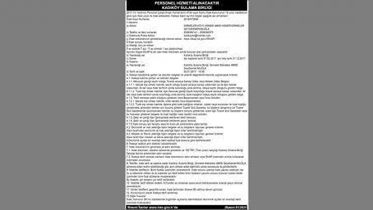 KADIKÖY SULAMA BİRLİĞİ PERSONEL İLANI