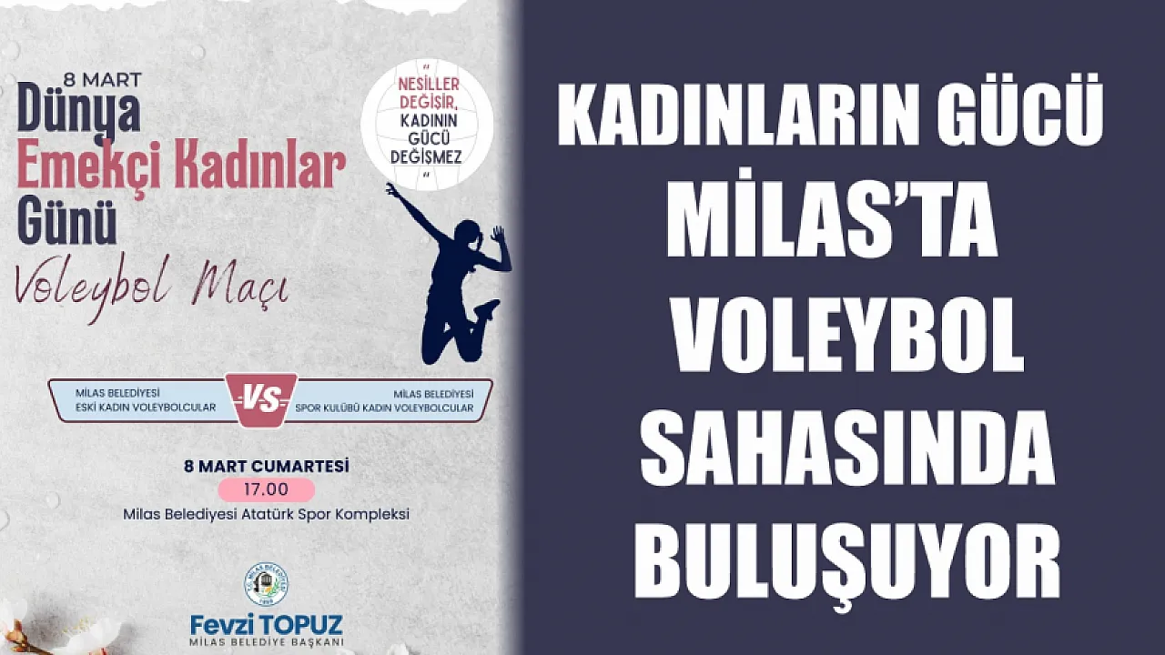 Milas Belediyesi organizasyonunda 8 Mart Dünya Emekçi Kadınlar Günü'ne özel voleybol maçı gerçekleştirilecek.