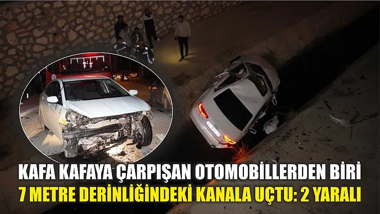 Kafa kafaya çarpışan otomobillerden biri 7 metre derinliğindeki kanala uçtu: 2 yaralı