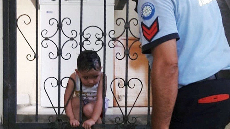 Muğla'nın Fethiye ilçesine bağlı Babataş Mahallesi'nde evin giriş kapısında oyun oynayan 3 yaşındaki Saregül Doğan, dış kapının korkuluklarına başını sıkıştırdı. Küçük çocuk, itfaiye ekipleri tarafından korkuluklar kesilerek kurtarıldı.