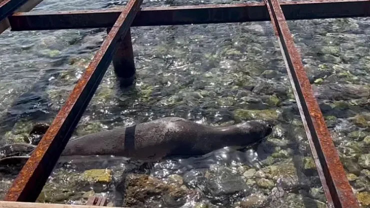 Muğla’nın Milas ilçesinde yetişkin bir fok, geldiği koydan saatlerce ayrılmayıp, kameralara adeta poz verdi.