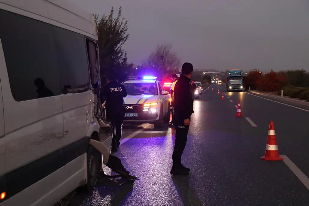 Kamyon emniyet şeridinde bekleyen işçi servisine çarptı: 1 ölü