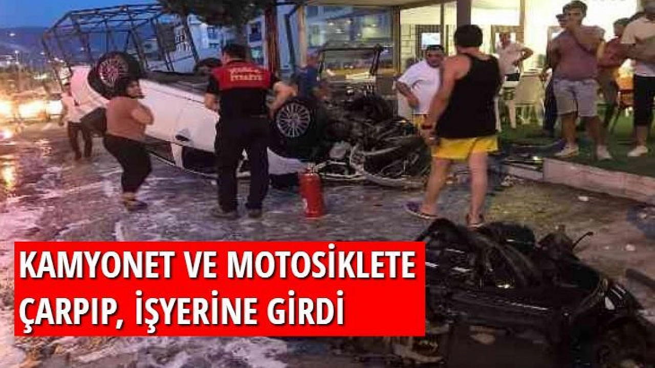 KAMYONET VE MOTOSİKLETE ÇARPIP, İŞYERİNE GİRDİ