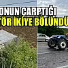 Meydana gelen feci kazada traktör ikiye bölünürken kamyon ise şarampole girerek durabildi. Kazada traktör sürücüsü Müslüm B., ile kamyon sürücüsü Ramazan M., yaralandı.
