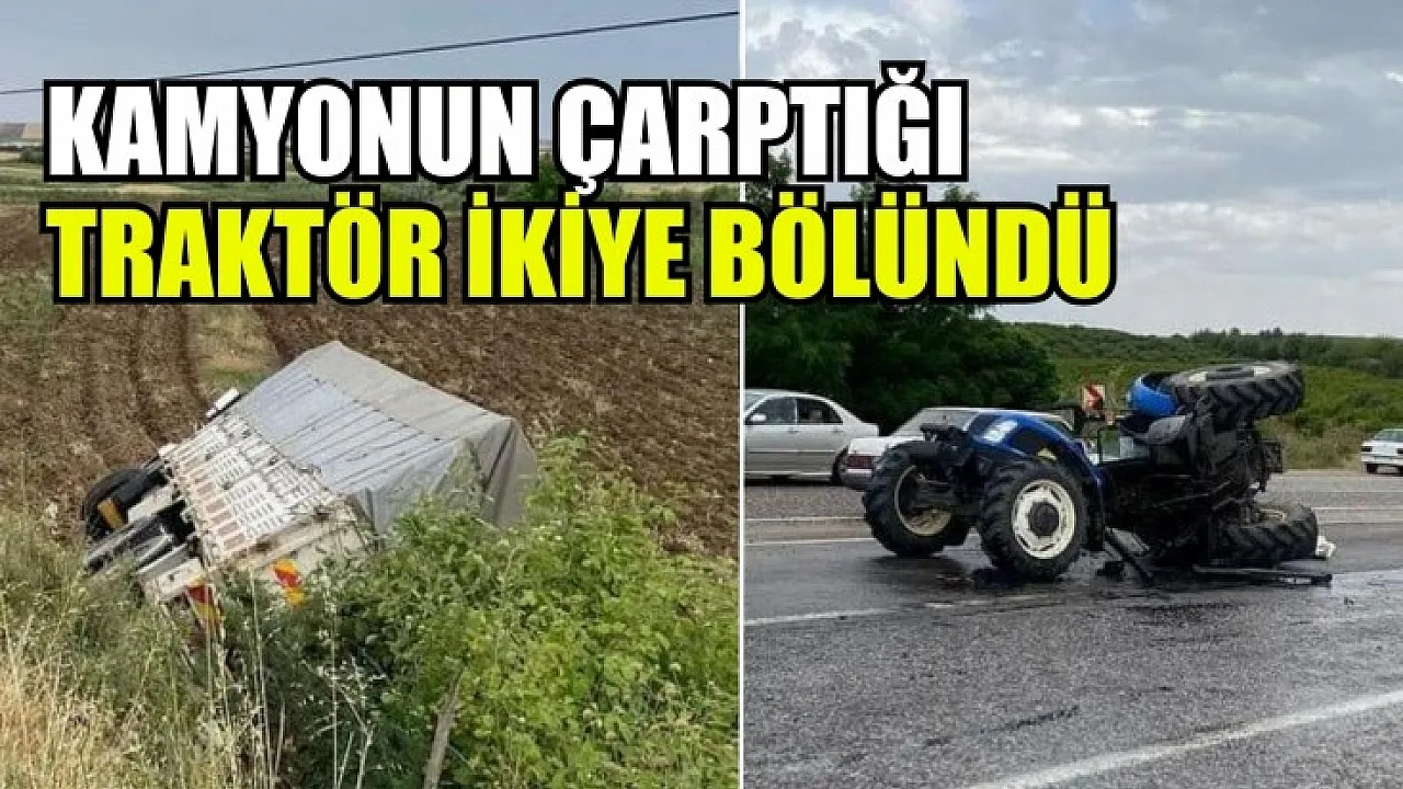 Kamyonun çarptığı traktör ikiye bölündü: 2 yaralı