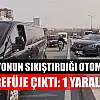 Seyir halindeki kamyonun sıkıştırdığı otomobil sürücüsü direksiyon hakimiyetini kaybederek beton refüje çıktı. Olay sonrası sürücüler arasında kısa süreli tartışma yaşanırken, otomobil içinde bulunan ve boynundan yaralanan yaşlı kadın ambulansla hastaneye kaldırıldı.