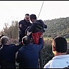 Kanala uçan minibüsün üstünde mahsur kaldı
