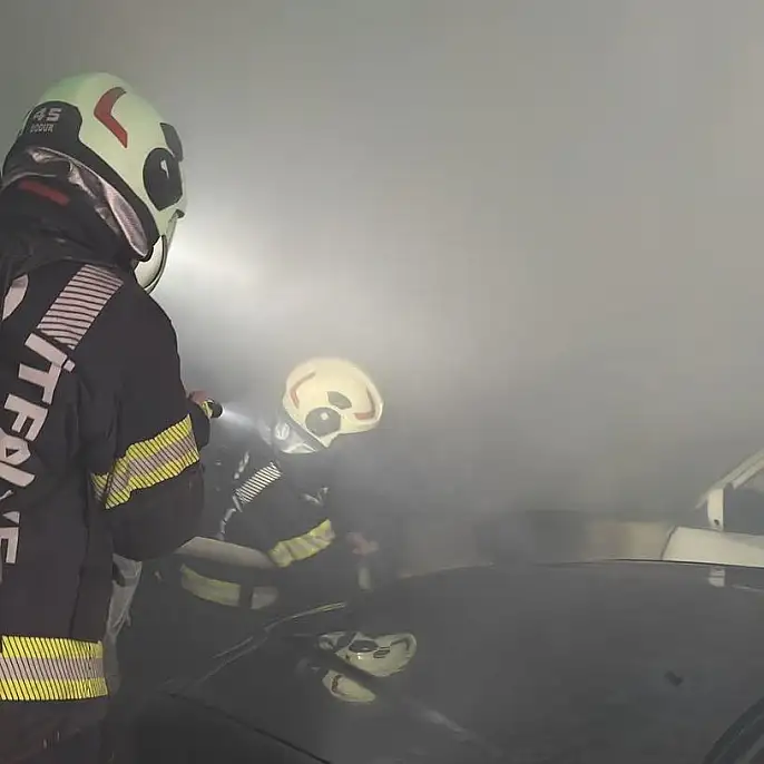 Denizli'nin Pamukkale ilçesinde kapalı bir otoparkta park halindeki otomobilde çıkan yangın paniğe neden oldu.