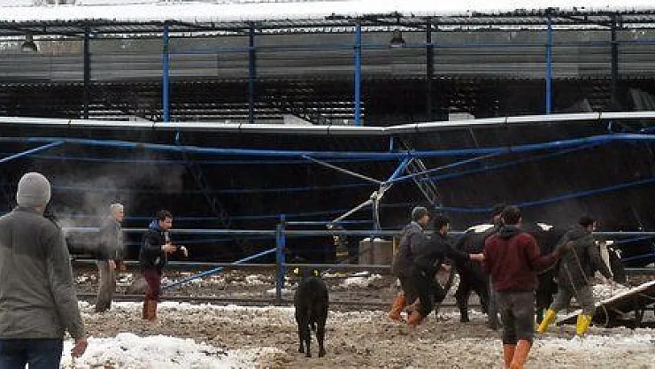 KAR ÇATI ÇÖKERTTİ BİR HAYVAN TELEF OLDU...