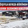 Yağış nedeniyle kayak pistlerinde ince kar tabakası oluştu.