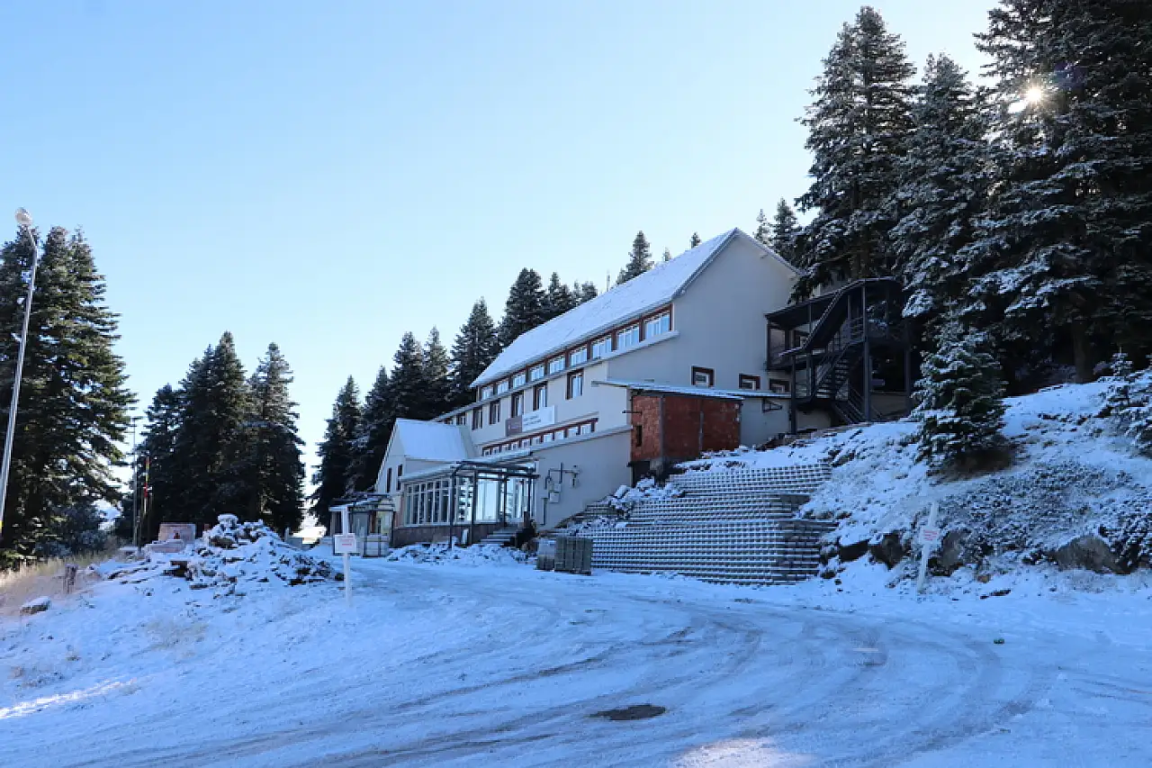 Kar yağışıyla beyaza bürünen Uludağ kayak sezonunu bekliyor