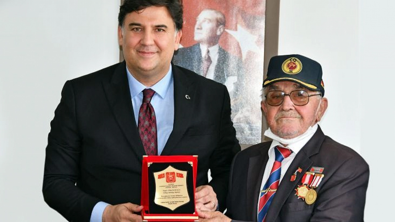 Fethiye Muharip Gaziler ve Şehit Aileleri Yardımlaşma ve Dayanışma Derneği Başkanı Namık Ünal ve beraberinde dernek yönetimi Fethiye Belediye Başkanı Alim Karaca'ya şimdiye kadar vermiş olduğu desteklerden dolayı teşekkür plaketi verdi.