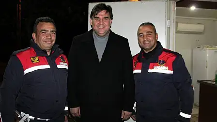 Fethiye Belediye Başkanı Alim Karaca yeni yıla çırpı mevkiindeki güvenlik güçleri kontrol noktası görevlileriyle birlikte girdi.