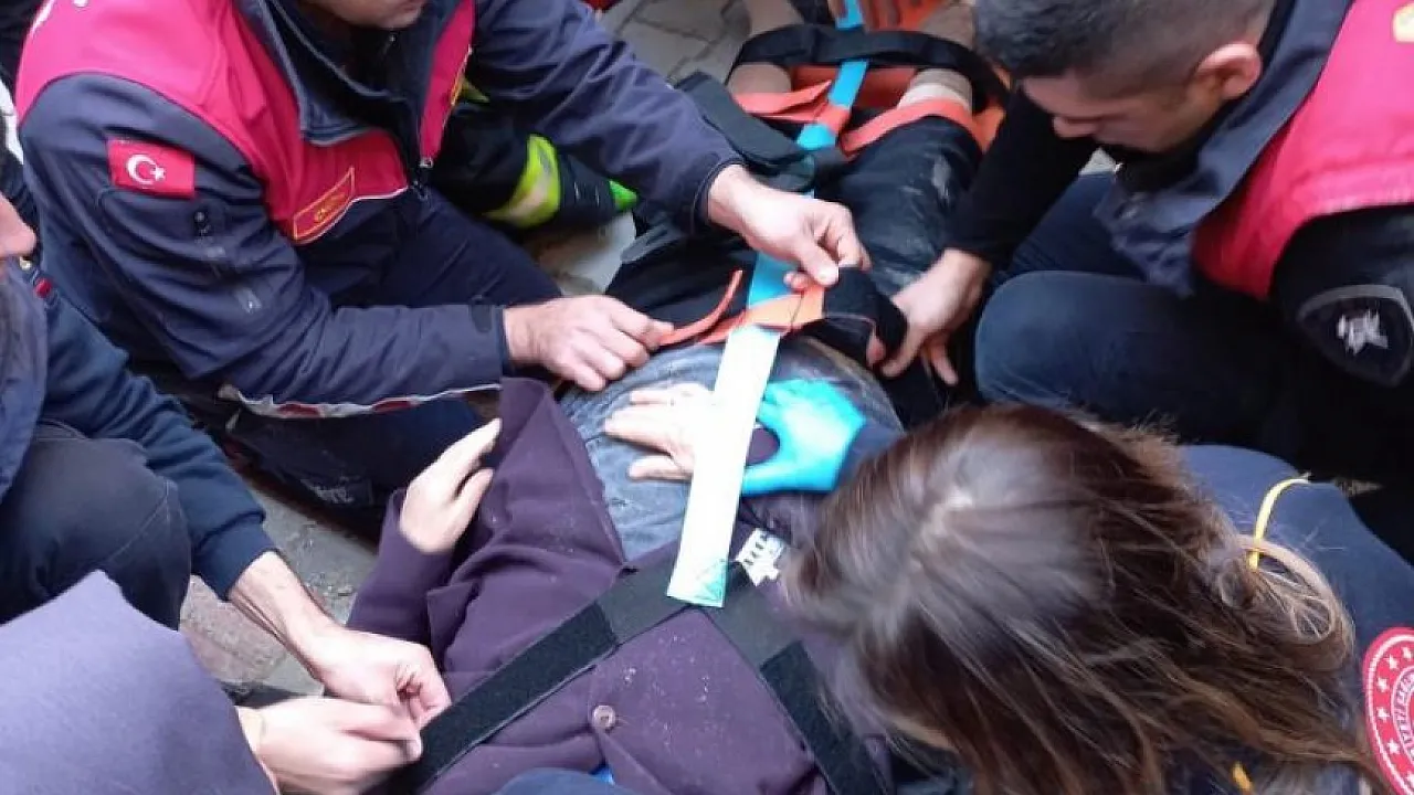 Kargo dağıtım aracının altında kalan kadını itfaiye kurtardı