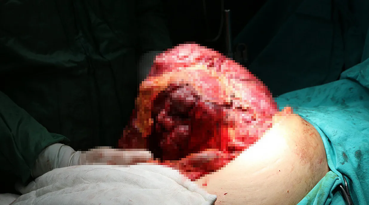 Balıkesir'de yaşayan 64 yaşındaki H.G., karnında ağrı ve şişlik şikayetiyle bir hastaneye başvurdu. Yapılan tetkikler sonucu yaşlı kadının mide kanaması geçirdiği belirtildi. İleri tedavi için İzmir Katip Çelebi Üniversitesi Atatürk Eğitim ve Araştırma Hastanesine sevk edildiğinde ise ilk şoku yaşadı. Burada yapılan tomografi sonucunda H.G.'nin karnının en alt bölümünden kalbin altına kadar uzanan yaklaşık 10 kilogram ağırlığında, 38 santim boyunda ve 26 santim eninde tümör olduğu teşhisi konuldu. Dev tümör, Genel Cerrahi Uzmanı Prof. Dr. Osman Nuri Dilek ve ekiplerinin birlikte girdiği operasyonla başarılı şekilde çıkartıldı.
