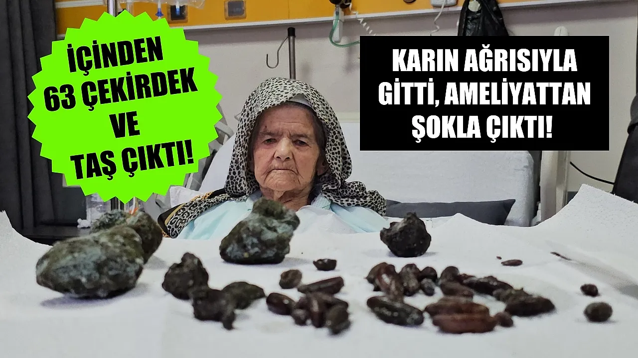İki saatlik ameliyatın ardından yaşlı kadının midesinden 28'i hurma, 35'i zeytin olmak üzere 63 çekirdek ve taşlaşmış 5 adet taş çıkartıldı.