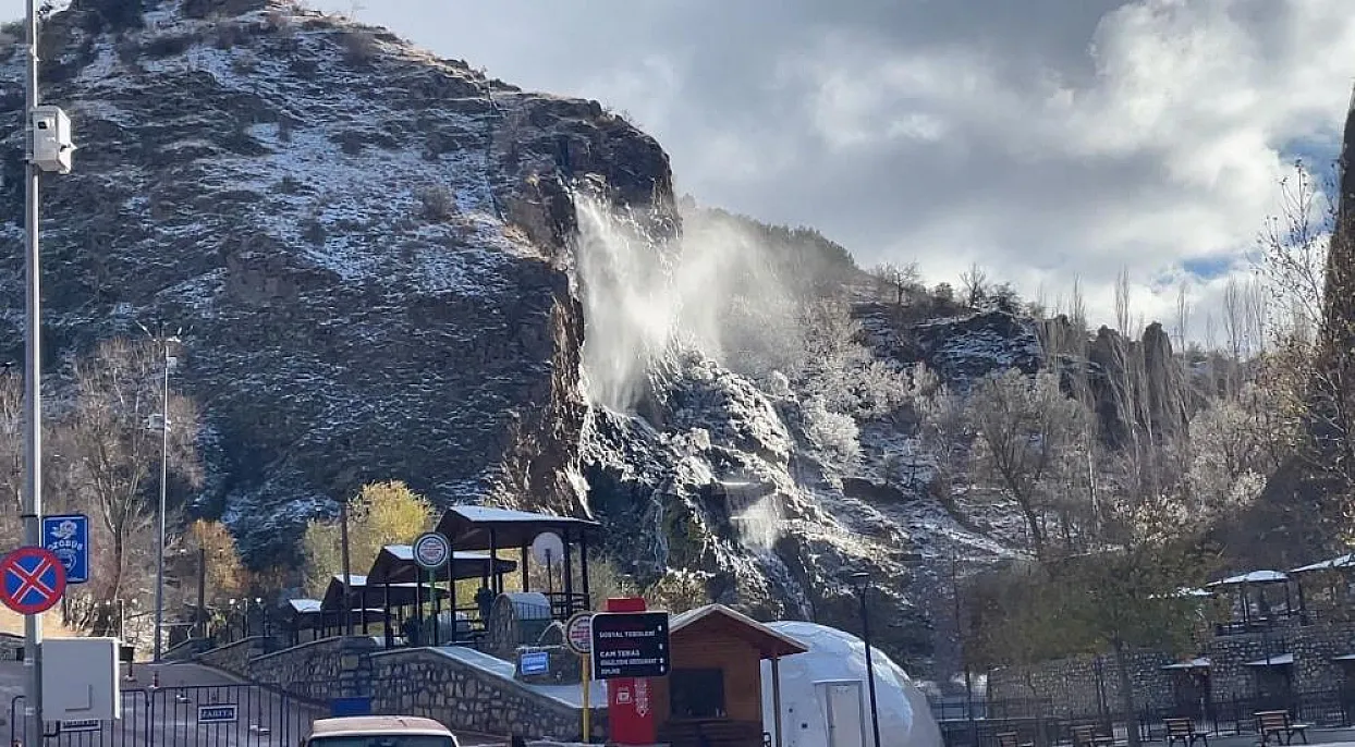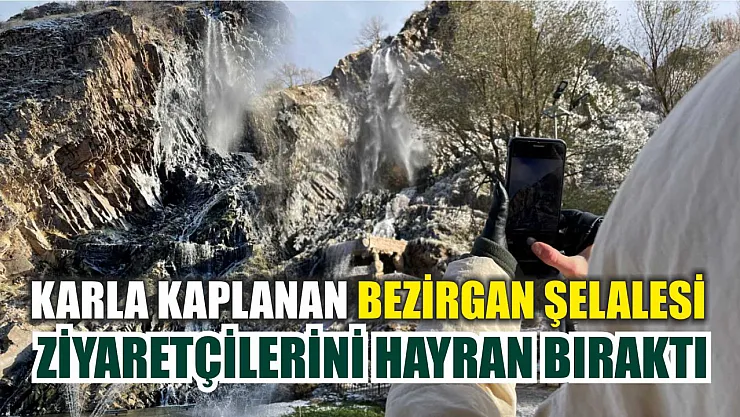 Karla kaplanan Bezirgan Şelalesi ziyaretçilerini hayran bıraktı