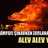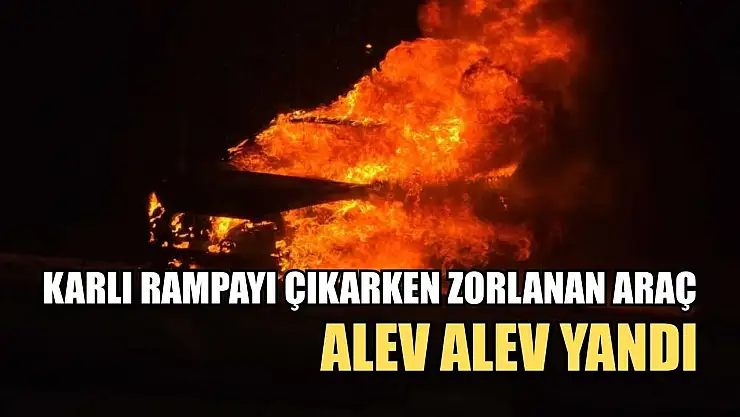 Karlı rampayı çıkarken zorlanan araç alev alev yandı