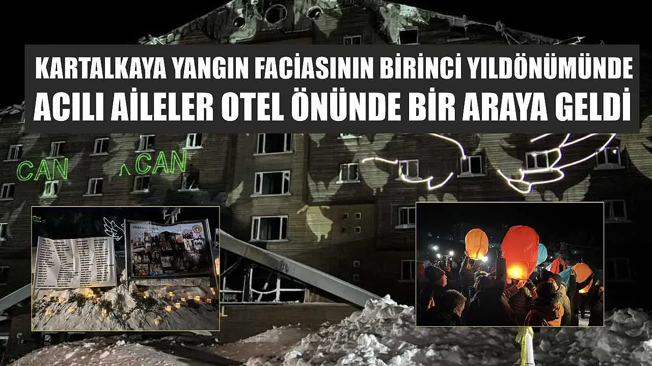 Bolu'da Grand Kartal Otel'de geçen yıl çıkan ve 34'ü çocuk 78 kişinin yaşamını yitirdiği yangın faciasının birinci yıldönümünde, acılı aileler otel önünde bir araya geldi. Facianın yaşandığı saat 03.17'de gökyüzüne dilek fenerleri bırakan aileler, kaybettikleri yakınlarını gözyaşlarıyla andı.