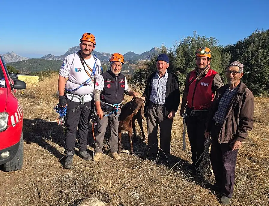 Kaya oyuğunda 3 gündür mahsur kalan keçi, arama kurtarma ekipleri tarafından film gibi operasyonla bulunduğu yerden çıkartılarak sahibine teslim edildi.