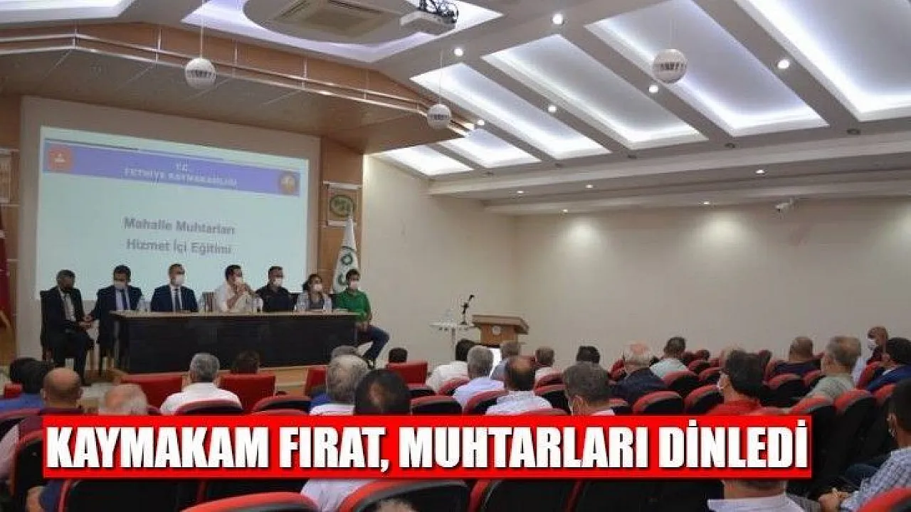 Fethiye Kaymakamı Eyüp Fırat, mahalle muhtarları ile toplantıda bir araya gelerek talep ve şikayetleri konusunda bilgi aldı. Kaymakam Fırat, 'Bu toplantı da hem mahalle muhtarlarımız ile tanışmak istedim, hem de mahallelerimizdeki sıkıntıları ve eksikleri öğrenmek istedim' ifadelerini kullandı.