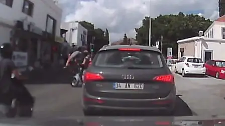 Bodrum'da bir motosikletle bisikletin çarpıştığı trafik kazası, araç kamerasına yansıdı.