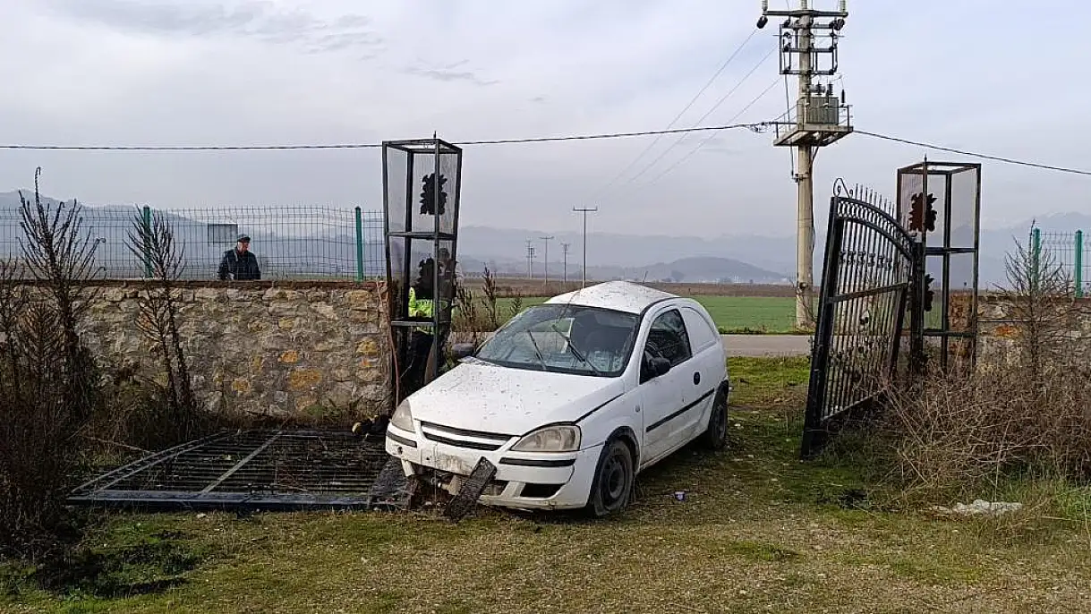 Bursa'nın İnegöl ilçesinde meydana gelen kazada bir otomobil, evin bahçe kapısına çarptı. Kazada yaralanarak baygınlık geçiren sürücü, saatler sonra donmak üzereyken bulundu.