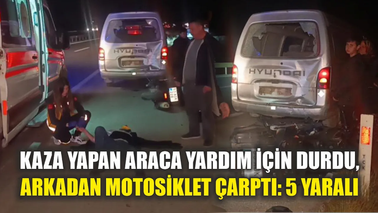 Kaza yapan araca yardım için durdu, arkadan motosiklet çarptı: 5 yaralı