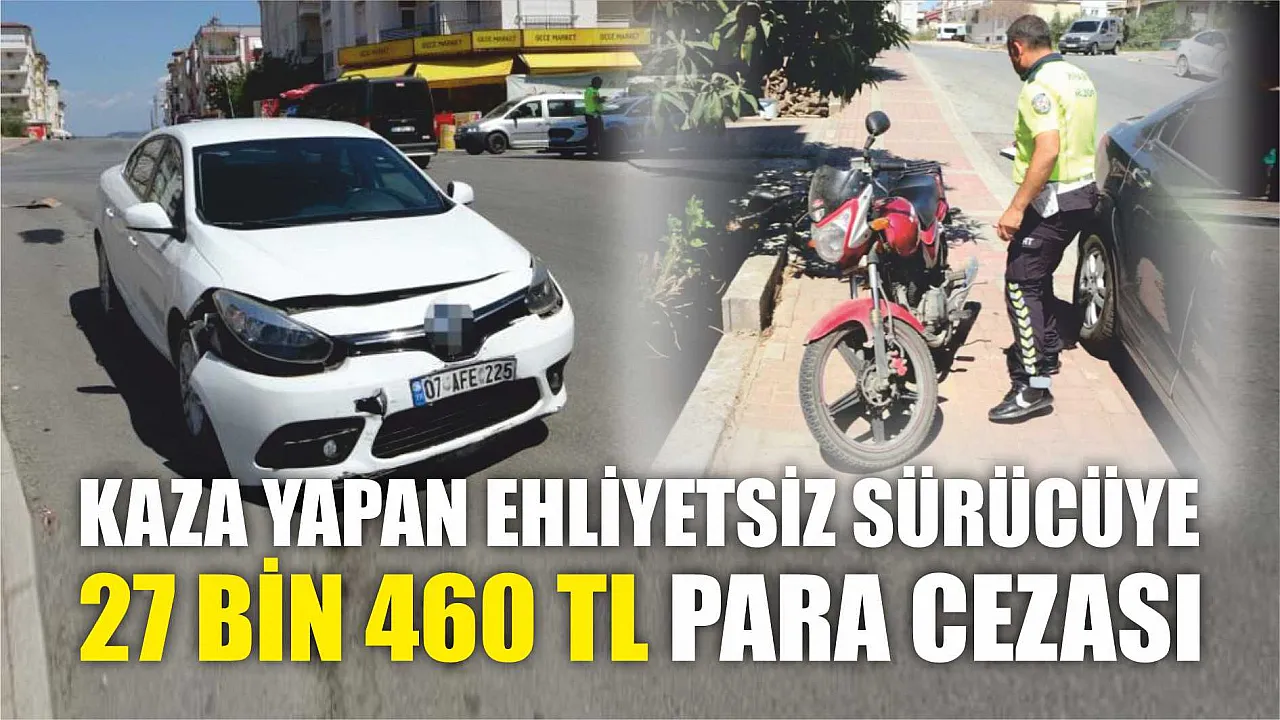 Kaza yapan ehliyetsiz motosiklet sürücüsüne 27 bin 460 TL para cezası