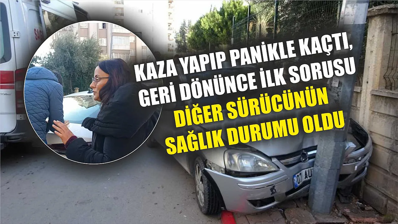 Meydana gelen trafik kazasında panikle olay yerinden kaçan kadın sürücü, bir süre sonra yaya olarak geri döndü. Polislere kazayı kendisinin yaptığını belirten kadının ilk sorusu diğer sürücünün sağlık durumu oldu.