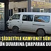 Kazanın şiddetiyle kamyonet sürüklendi kuaförün duvarına çarparak durabildi