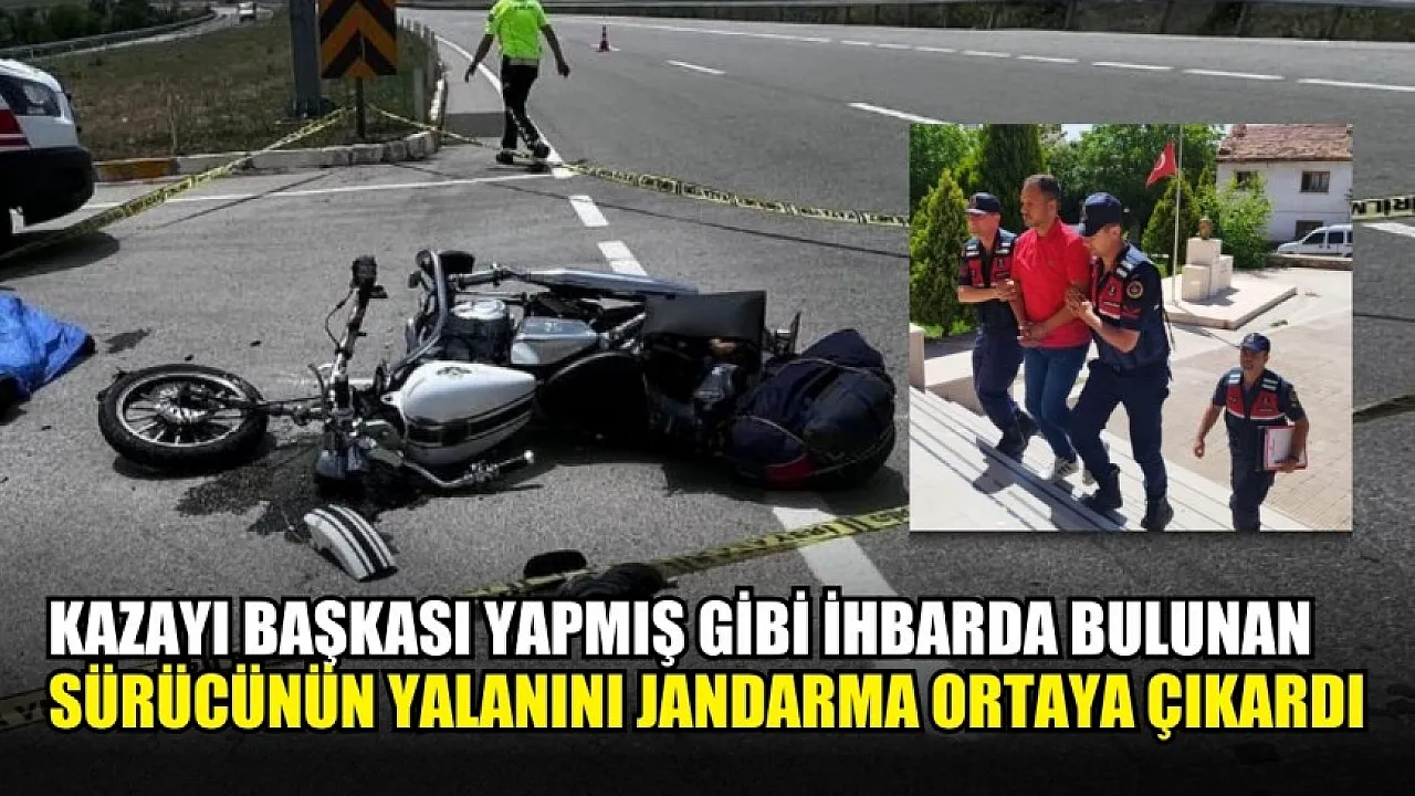 Motosiklet sürücüsünün ölümüne neden olan, kazayı başkası yapmış gibi ihbarda bulup ambulansın gelmesini bekleyen sürücünün yalanını jandarma ortaya çıkardı